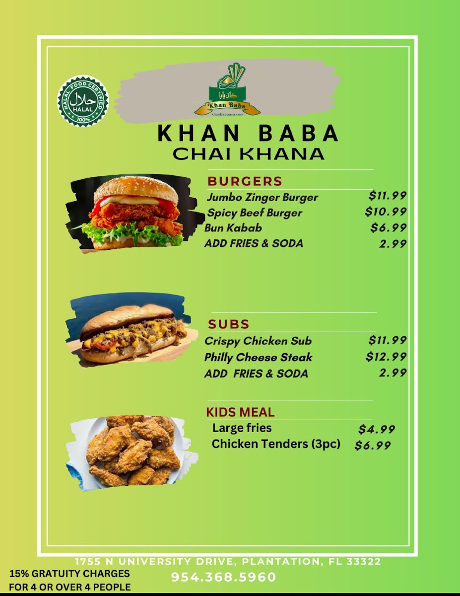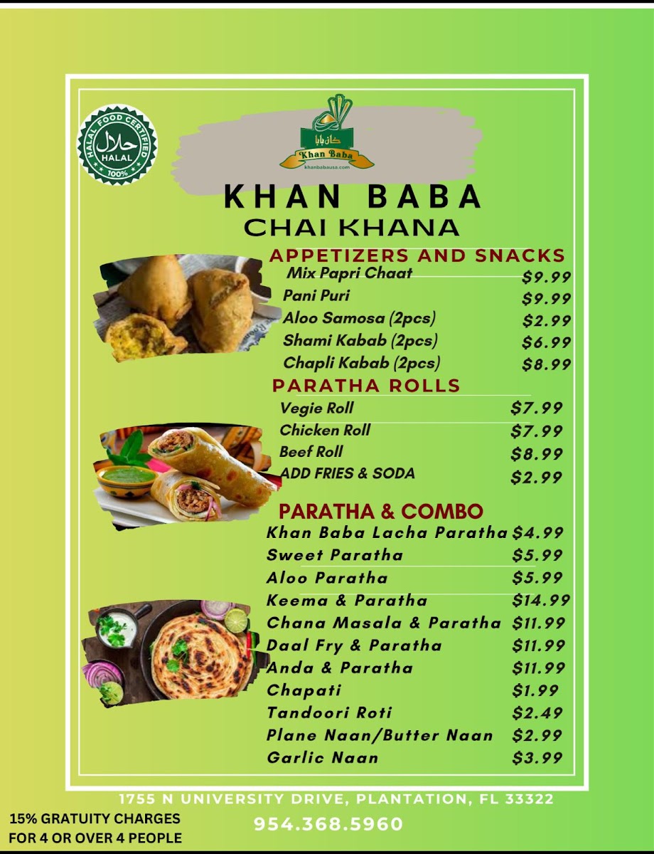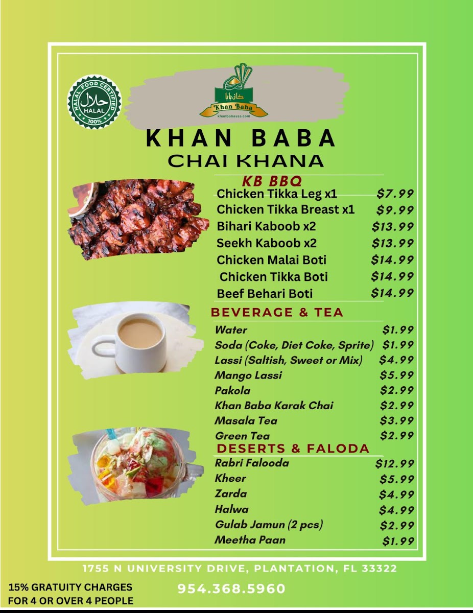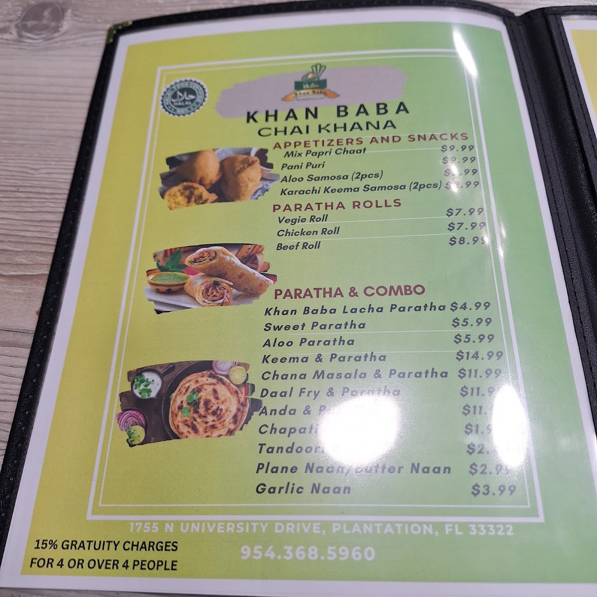 If you’re craving a flavor journey that brings together the best of South Asia, the Khan Baba Plantation Pakistani Indian Bangladeshi Food Menu is a feast worth exploring. Located at 1755 N University Dr in Plantation, this spot captures the true spirit of comfort food with a mix of rich spices, tender meats, and homestyle curries. The menu highlights everything from sizzling kebabs and buttery naan to hearty biryanis that fill the room with irresistible aroma. Each dish carries its own character-whether it’s a tangy chicken tikka or a slow-cooked lamb korma layered with spice and depth. For vegetarians, there’s plenty to love too, like creamy dal makhani or fragrant vegetable biryani. With every bite, you can feel the warmth of authentic South Asian cooking, where traditional recipes meet vibrant local energy. The flavors are bold, the portions generous, and the experience delightfully satisfying for anyone looking to taste the heart of Pakistani, Indian, and Bangladeshi cuisine all in one place.